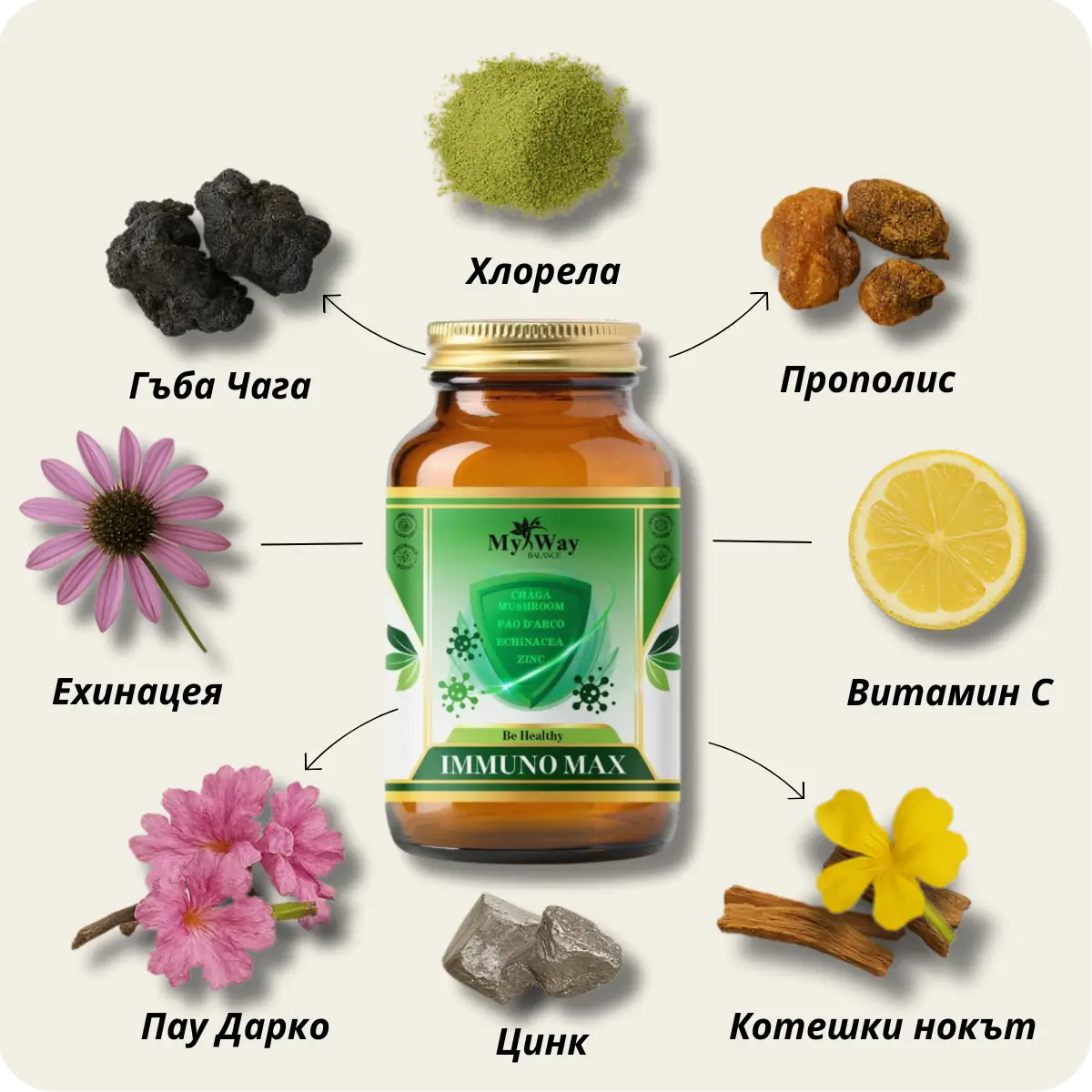 IMMUNO MAX укрепва защитните сили, подобрява енергията ви и ви помага да възстановите здравето и самочувствието си.